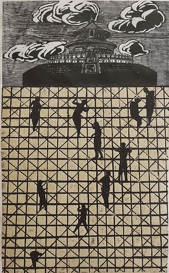 千工聚力筑国强(木版画)